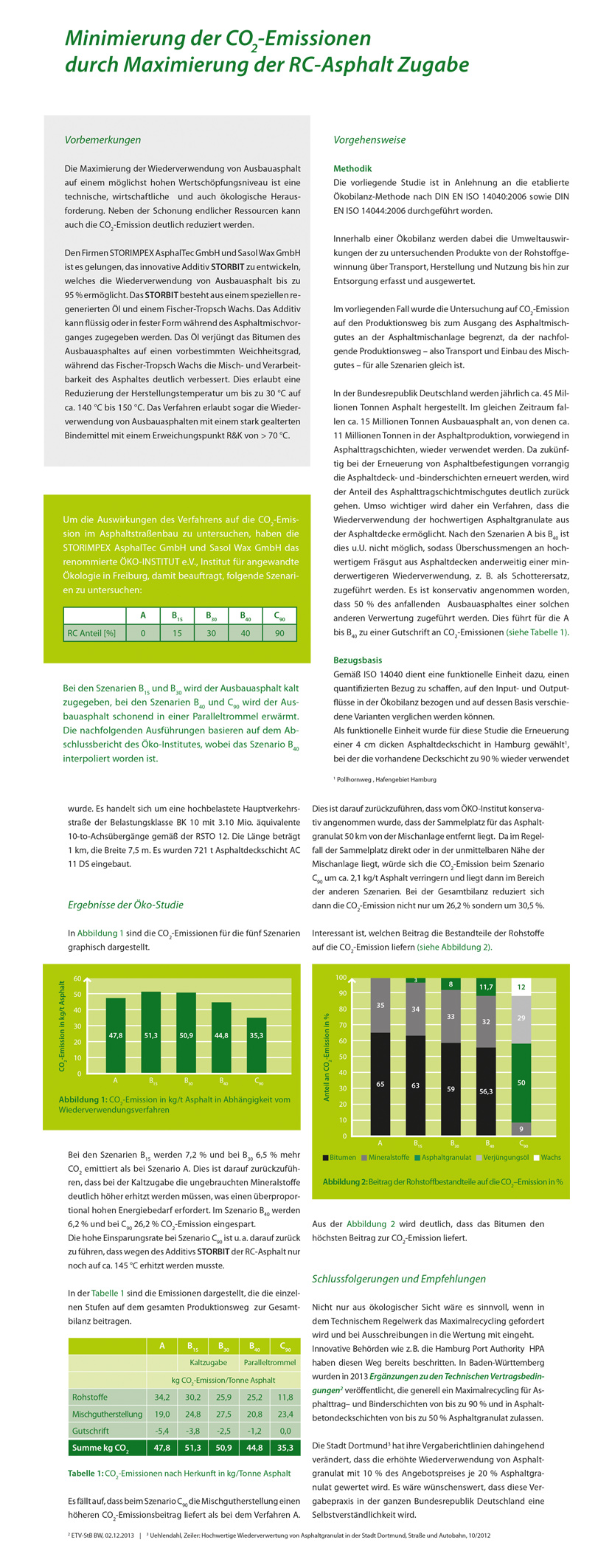 ...Abgesehen von einer Schonung der Ressourcen bieten derartige Verfahren erhebliche wirtschaftliche Vorteile durch deutlich niedrigere Materialkosten. Aus ökologischer Sicht ist hervorzuheben, dass bei einer hohen Wiederverwendungsrate der CO2–Ausstoß um mehr als 30 % verringert werden kann ...
